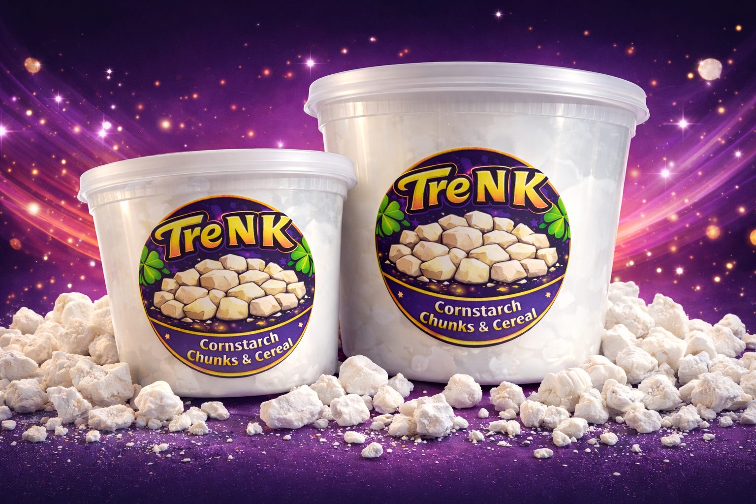 Tre N K Chawnks products are handmade sensory and ASMR items created for visual, tactile, and relaxation purposes only. Our cornstarch chunks, cereal, and bottles are not intended for consumption.